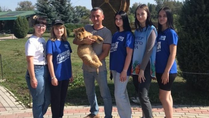 В знак благодарности руководство зоопарка разрешило ребятам поиграть с львенком Цезарем и сделать памятные фотографии с царем зверей.