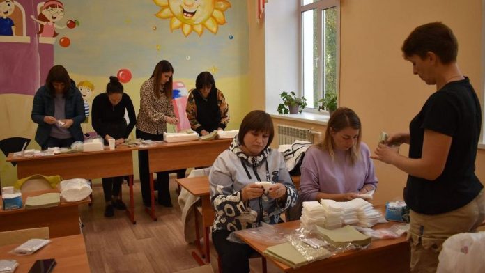 3 октября члены Ряжского отделения Союза женщин России изготовили первую партию сухого армейского душа.