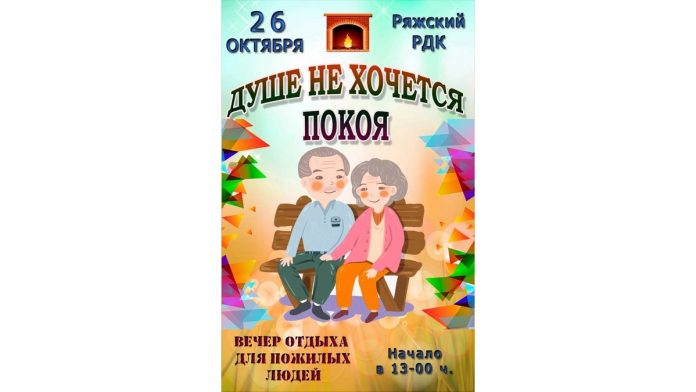 26 октября в 13 часов в Ряжском районном Доме культуры состоится вечер отдыха для пожилых людей «Душе не хочется покоя».
