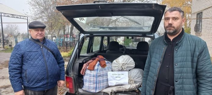 Посылку передали диакону Александру Скворцову, члену отряда «Горыничи».