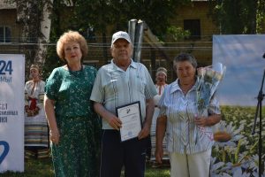 Заместитель главы Ряжского округа Марина Вышегородцева поздравила жителей улицы с праздником и вручила благодарственные письма Виктору и Валентине Дягилевым, а также Анатолию и Надежде Гришиным.