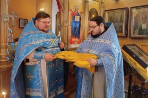 Настоятель Христорождественского храма иеромонах Савва (Алешин) поблагодарил отца Виктора за добросовестное служение в течение двух лет в храме и подарил на память покровцы.