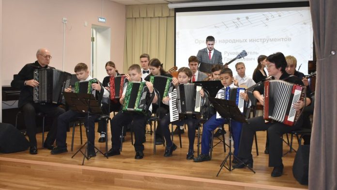 К открытию воспитанники школы подготовили концерт, на котором выступили пианисты, гитаристы, вокалисты, духовой оркестр.