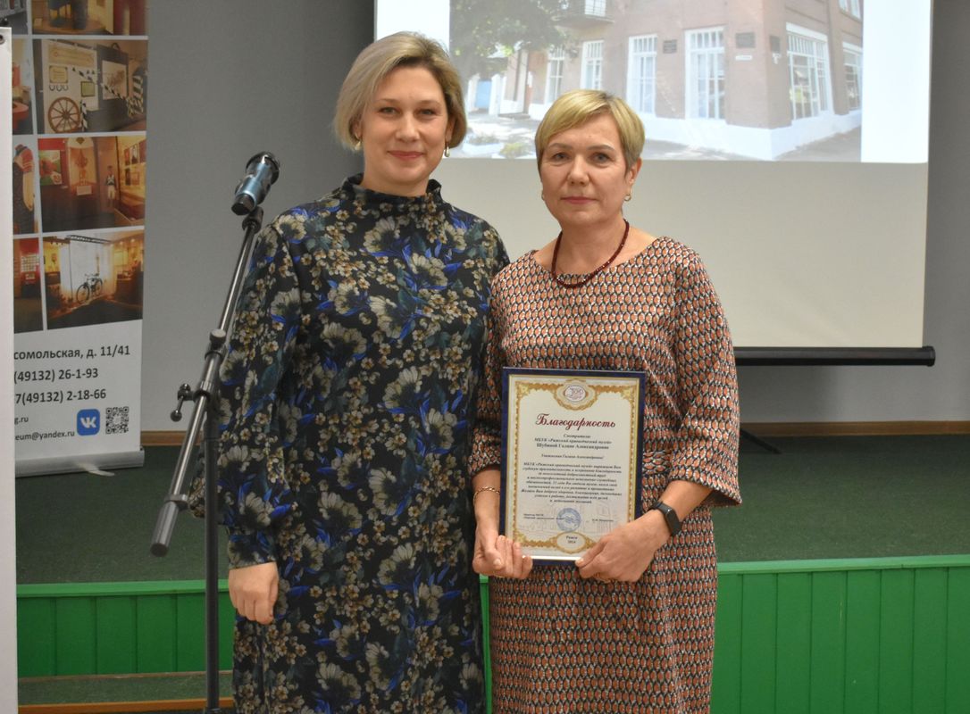 Директор краеведческого музея Юлия Мокроусова выразила благодарность смотрителю музея Галине Шубиной. Галина Александровна пришла работать в музей в 1991 году и до сих остается верна любимому делу.