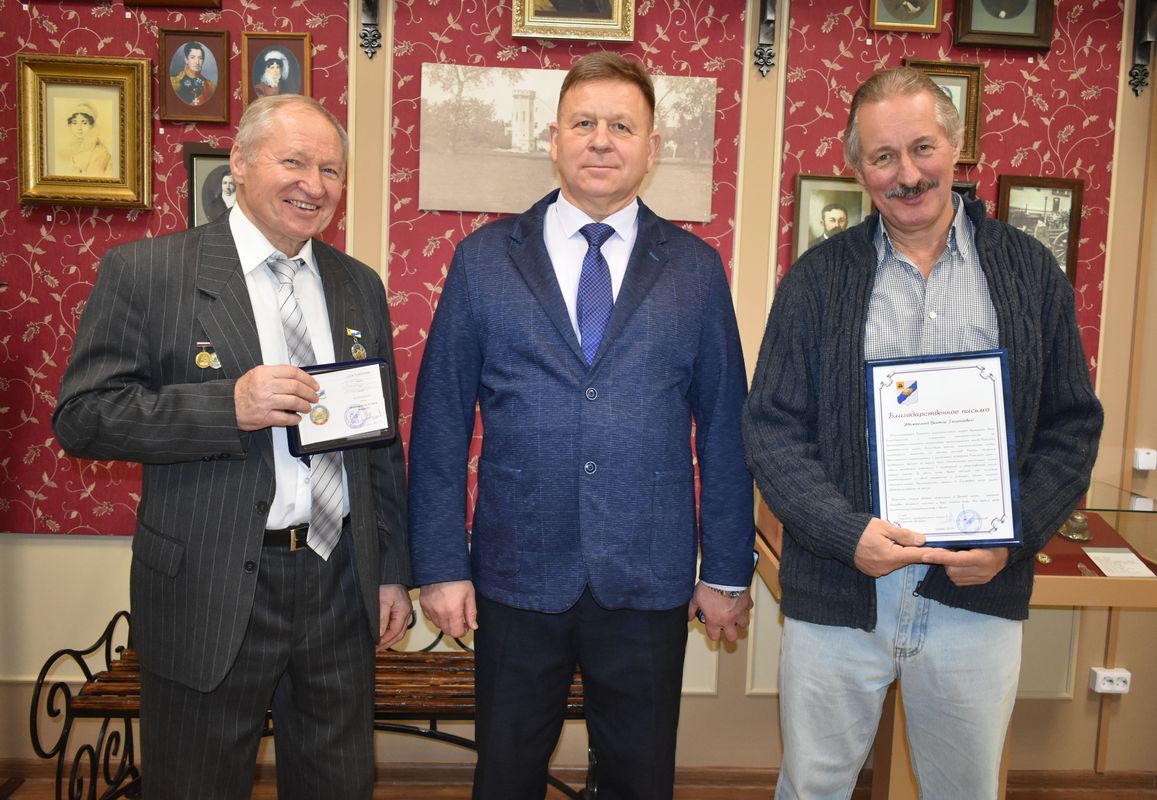 За вклад в обновление музея глава округа вручил нагрудный знак «Благодарность от Земли Ряжской» художнику Владимиру Тяжкину и благодарственное письмо художнику Виктору Сухову.