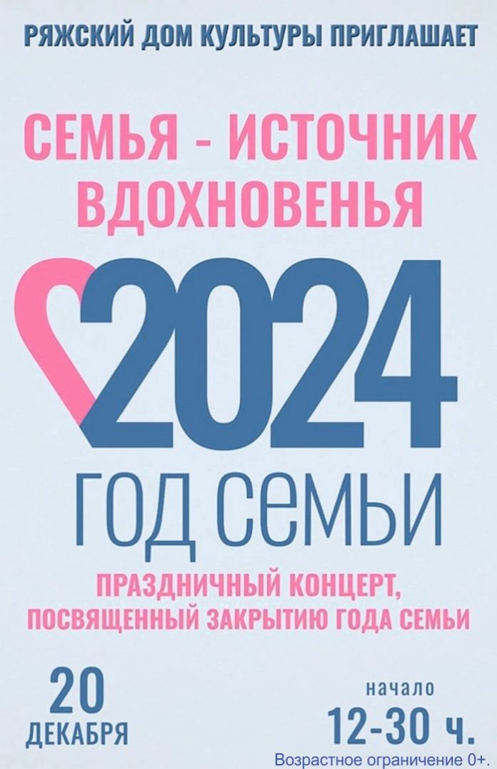 20 декабря в Ряжском Доме культуры состоится концерт, посвященный закрытию Года семьи.