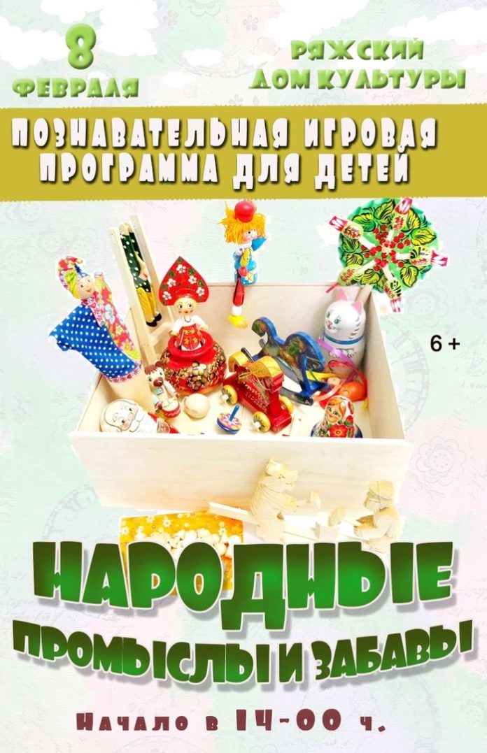 8 февраля в Ряжске детей и взрослых приглашают на веселую познавательную игровую программу, посвященную Дню народных промыслов Рязанской области.