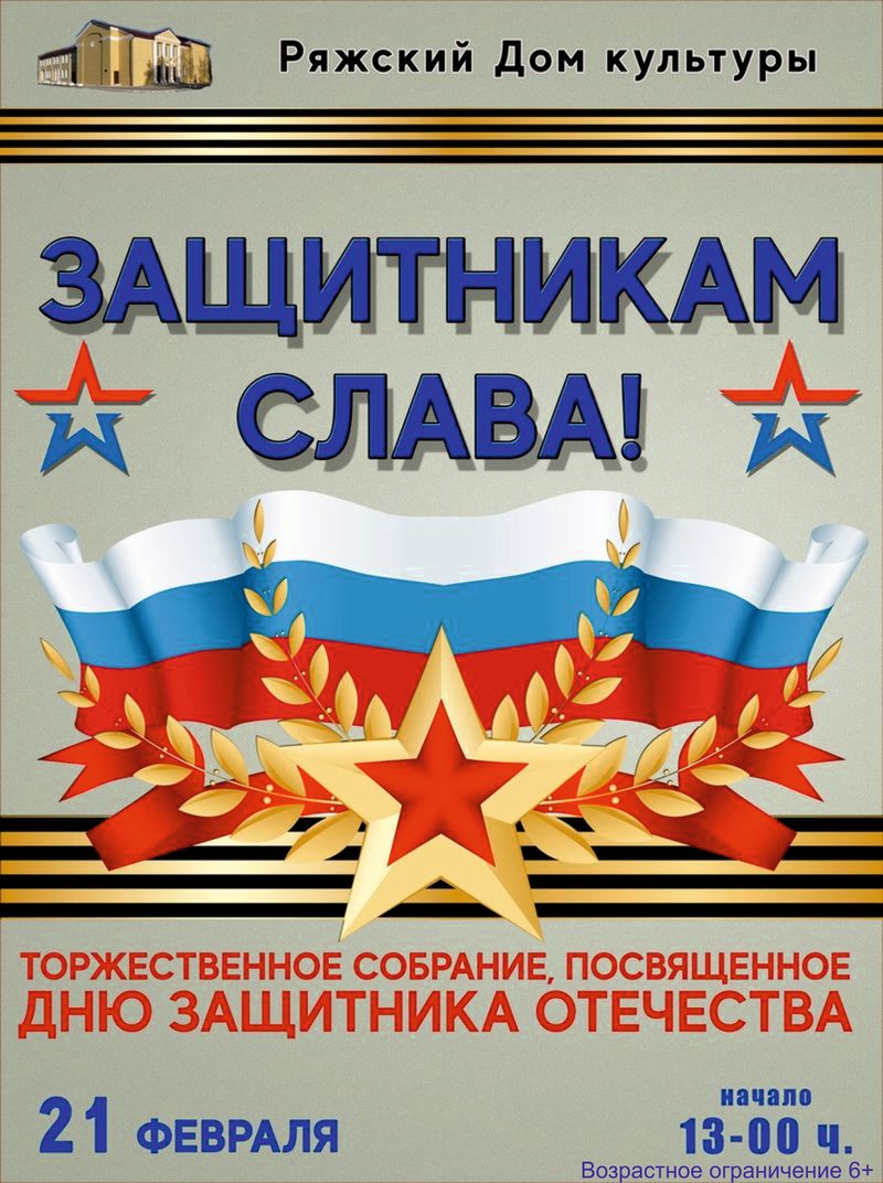 Главная Ряжцев приглашают на концерт, посвященный Дню защитника Отечества От admin - 15 февраля, 2025 0 137 21 февраля в Ряжском Доме культуры состоится торжественное собрание, посвященное Дню защитника Отечества. Праздничная программа «Защитникам слава!» начнется в 13 часов. Возрастное ограничение 6+. Фото со страницы РДК в соцсети «ВКонтакте»