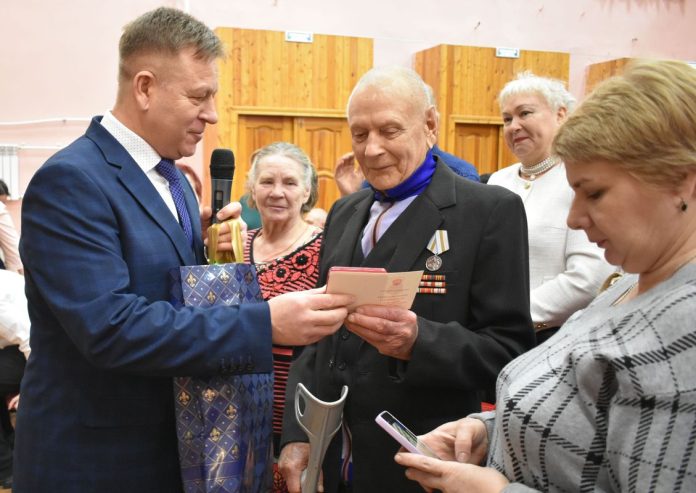 Андрей Викторович под громкие аплодисменты зала передал награду ветерану.