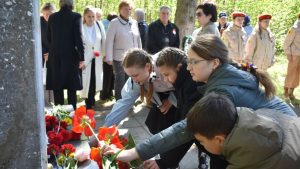 Начальник управления образования и молодежной политики Ряжского округа Галина Кирсанова поздравила всех с наступающим праздником и пожелала мира, добра и благополучия. Ученики средней школы № 4 подготовили литературную композицию. Затем все присутствующие почтили память погибших минутой молчания.