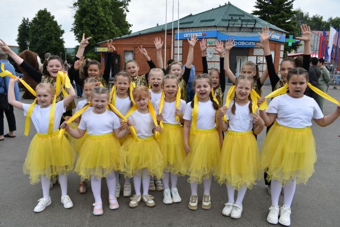 В это время со сцены звучали песни о лете, дружбе и хорошем настроении в исполнении солистов и коллективов детской музыкальной школы, Ряжского Дома культуры.