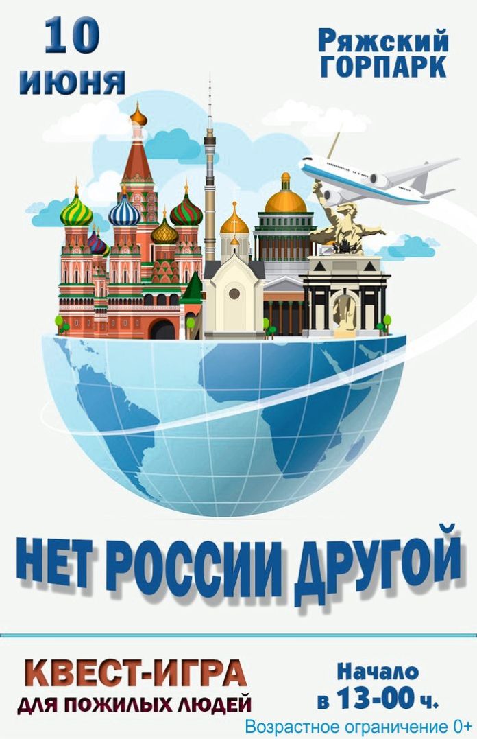 10 июня в Ряжске людей старшего возраста приглашают на квест-игру «Нет России другой», посвященную Дню России.