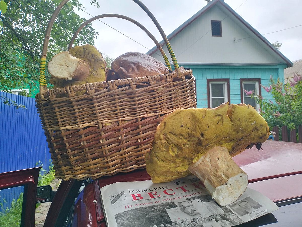 Житель Ряжска Николай не устает радоваться количеству грибов. Сегодня в его корзинке – благородные белые гиганты. Как истинный грибник, Николай свои места не выдает, но говорит: «Кто ищет, тот найдет, грибов нынче много разных. Уже несколько дней собираю по 20–25 килограммов».