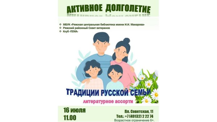 16 июля в 11 часов в центральной библиотеке им. И.И. Макарова состоится очередное заседание клуба «Тема». На нем предлагается обсудить произведения отечественных писателей, на страницах которых воссоздан образ русской семьи.
