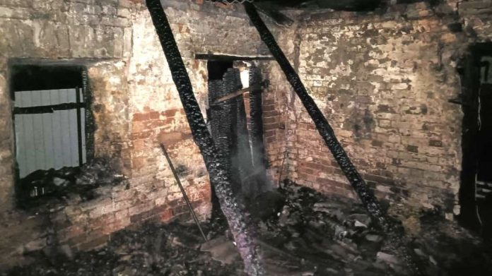 Постройка повреждена по всей площади, пламя полностью уничтожило крышу.