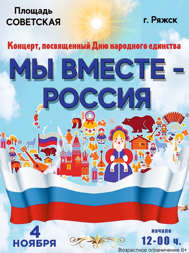 В 12.00 на площади Советской пройдет патриотический концерт «Мы вместе – Россия!».
