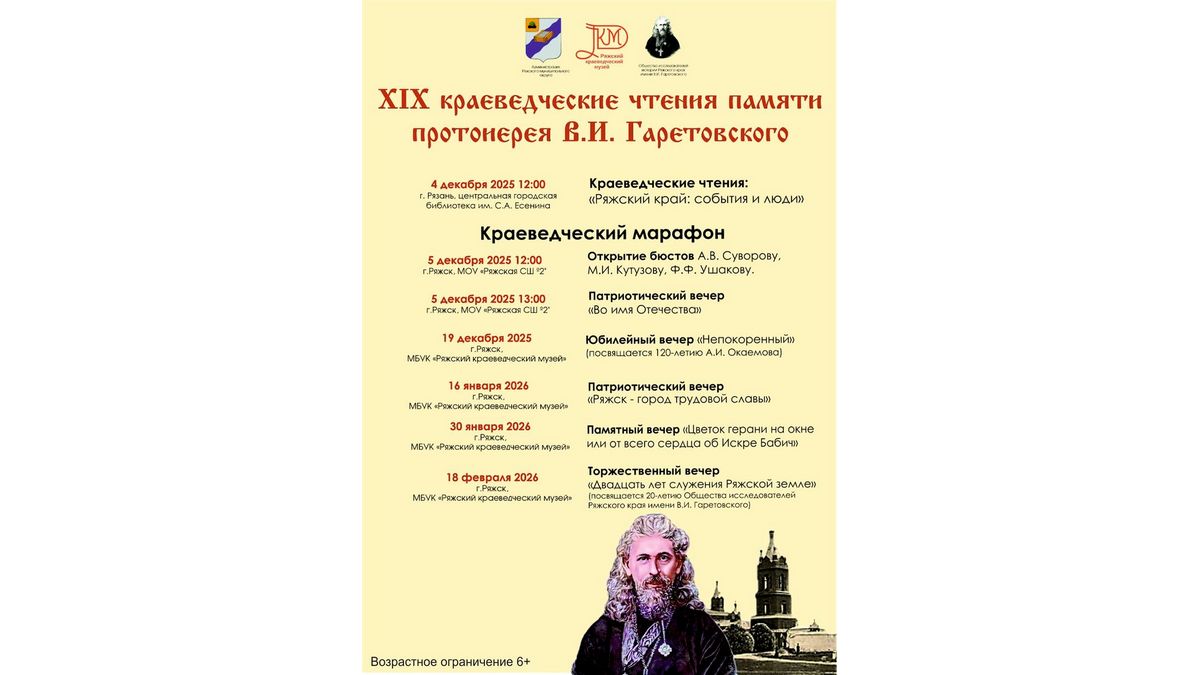 В рамках Гаретовских чтений Ряжский краеведческий музей приглашает: