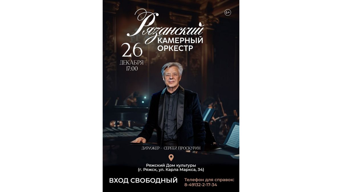 26 декабря в 17.00 в обновленном зале Ряжского Дома культуры состоится концерт Рязанского камерного оркестра под управлением заслуженного работника культуры РФ Сергея Проскурина.