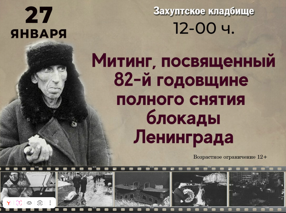 27 января в Ряжске на Захуптском кладбище состоится митинг, посвященный 82-й годовщине полного освобождения Ленинграда от фашистской блокады.