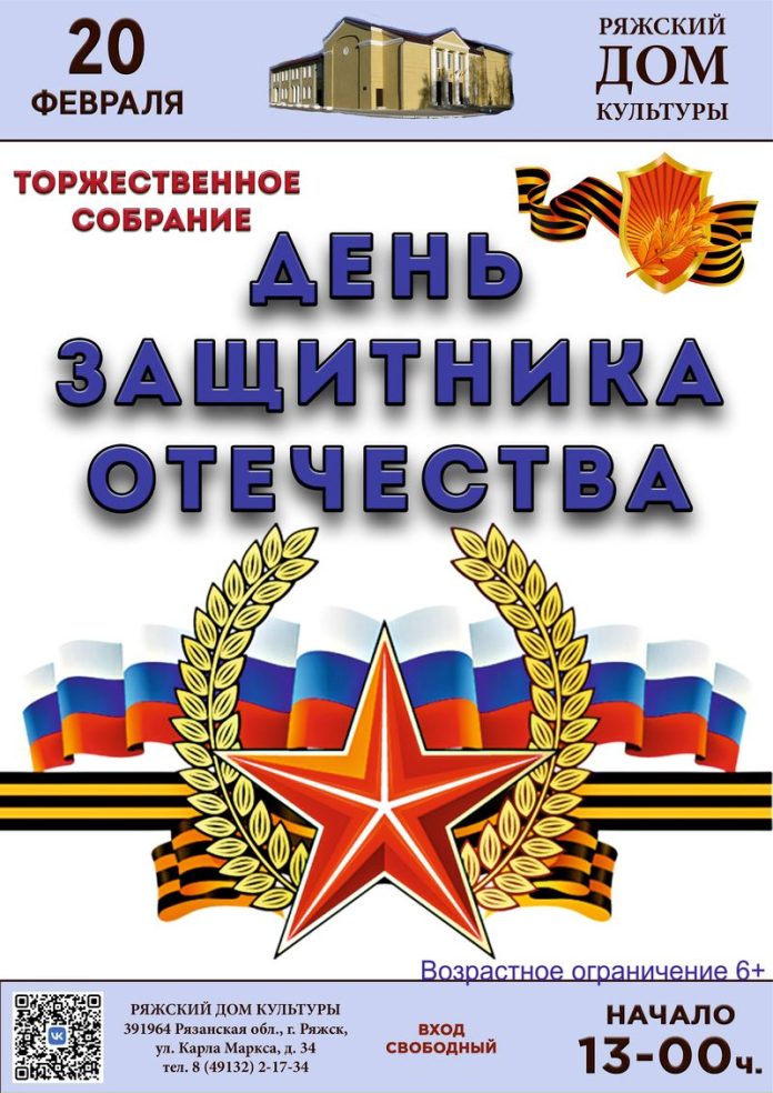 Главная Ряжцев приглашают на концерт, посвященный Дню защитника Отечества От admin - 17 февраля, 2026 0 10 20 февраля в Ряжском Доме культуры состоится торжественное собрание, посвященное Дню защитника Отечества. Праздничная программа начнется в 13 часов. Возрастное ограничение 6+. Афиша со страницы Ряжского Дома культуры в соцсетях «ВКонтакте».