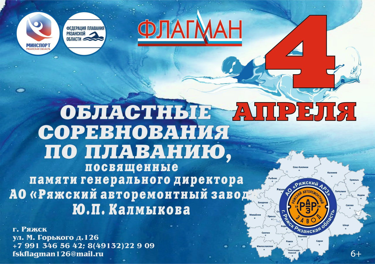 4 апреля в Ряжской спортивной школе «Флагман» состоятся областные соревнования по плаванию, посвященные памяти генерального директора АО «Ряжский авторемонтный завод» Юрия Павловича Калмыкова.